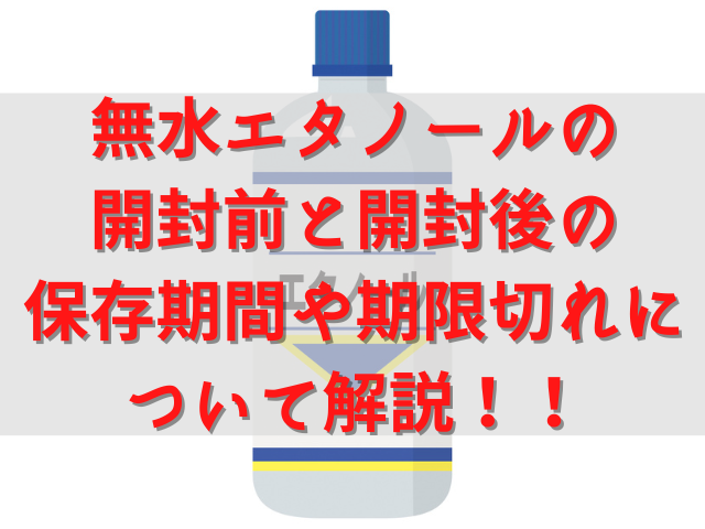 無水エタノールはその性質上、開封前も開封後も約3年ほどです。